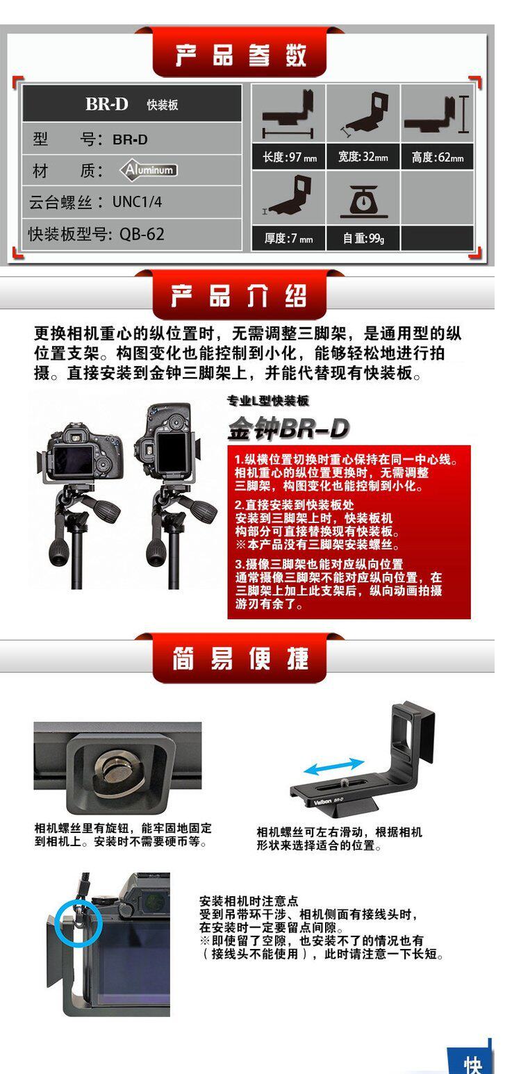 Velbon/Golden Bell Br-D L-тип плата быстро загружает/быстро оборудованное устройство для использования платы быстрого установки QB-62