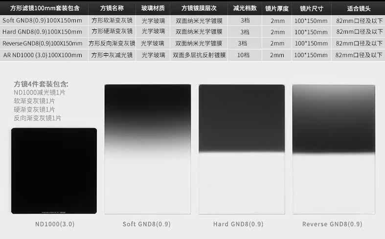 Сопротивление квадратного фильтра 100 мм GND0.9 Soft/Hard/Reverse+ND1000 снижение света+градиент серый зеркал набор