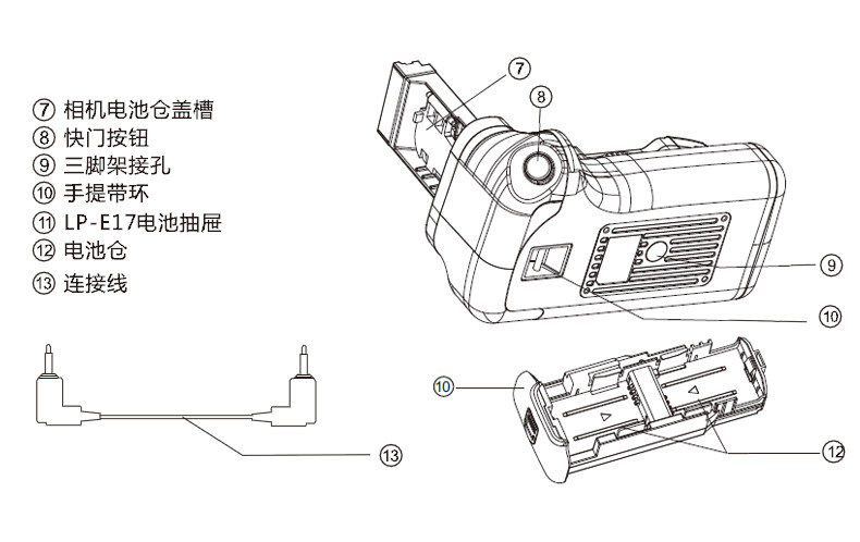 Canon, камера, ручка, корпус батареи, батарея, T7, E17