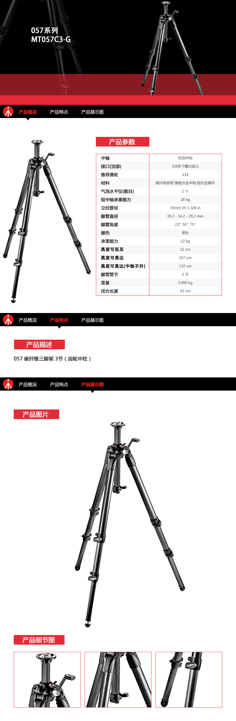 Manfrotto/曼富图 MT057C3-G 3 штатив углеродного волокна (столбец в передаче)