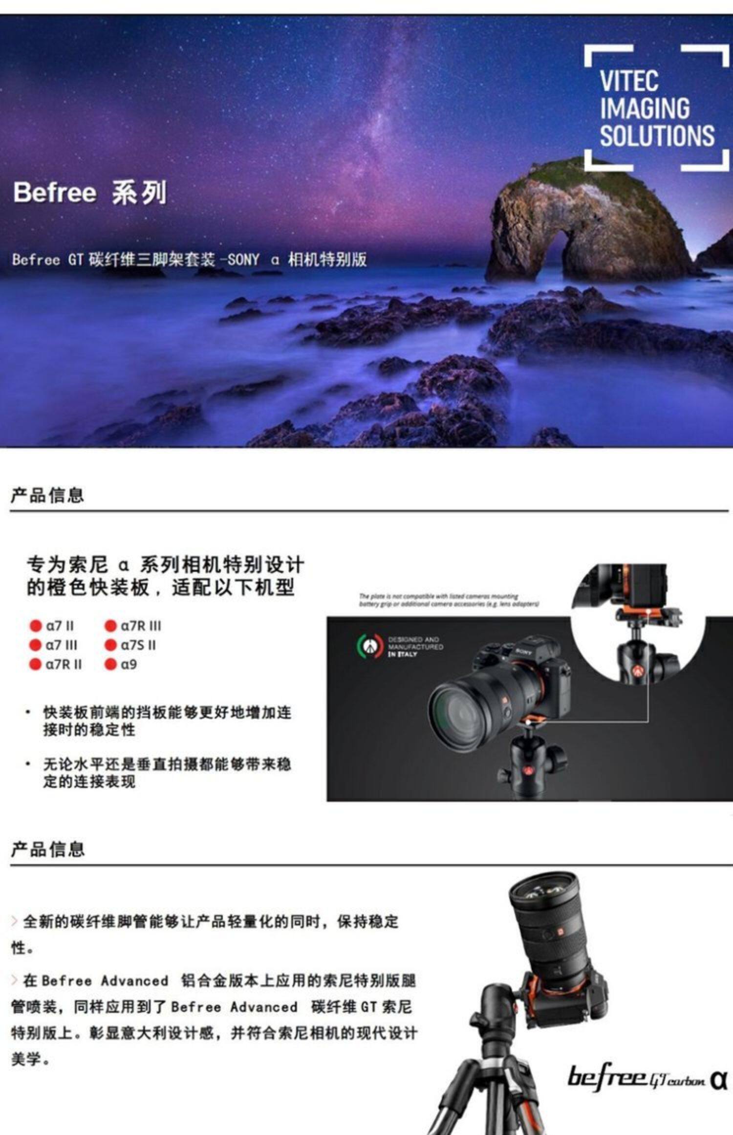 Manfrotto Befree Carbon Fiber Mkbfrtc4gta-BH Gloss Set (Sony Special Edition)