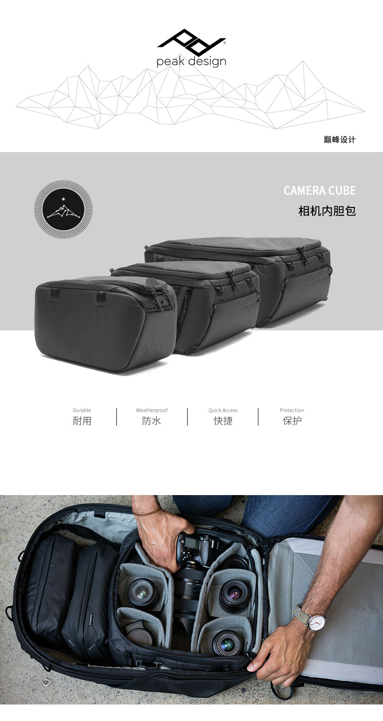 巅峰设计 Пик дизайна камеры кубики камеры SLR камера внутренней билевой мешок Shock -Rapen 45l опция