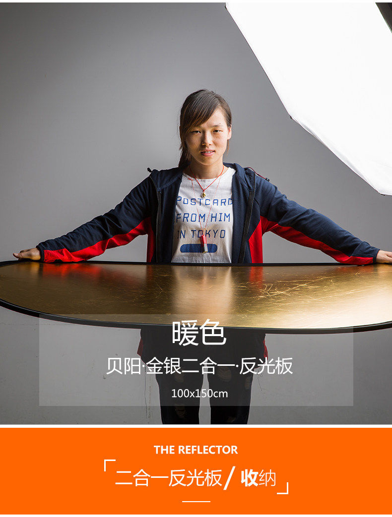Рефлектор, заполняющий свет, светоотражающая складная мигающая лампа, 100×150см, 2 в 1, золото и серебро