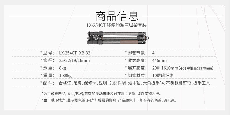 Litu/Leofoto LX-254CT+XB-32 Портативный рефлюкс Туризм Туризм углеродные штативы штативы