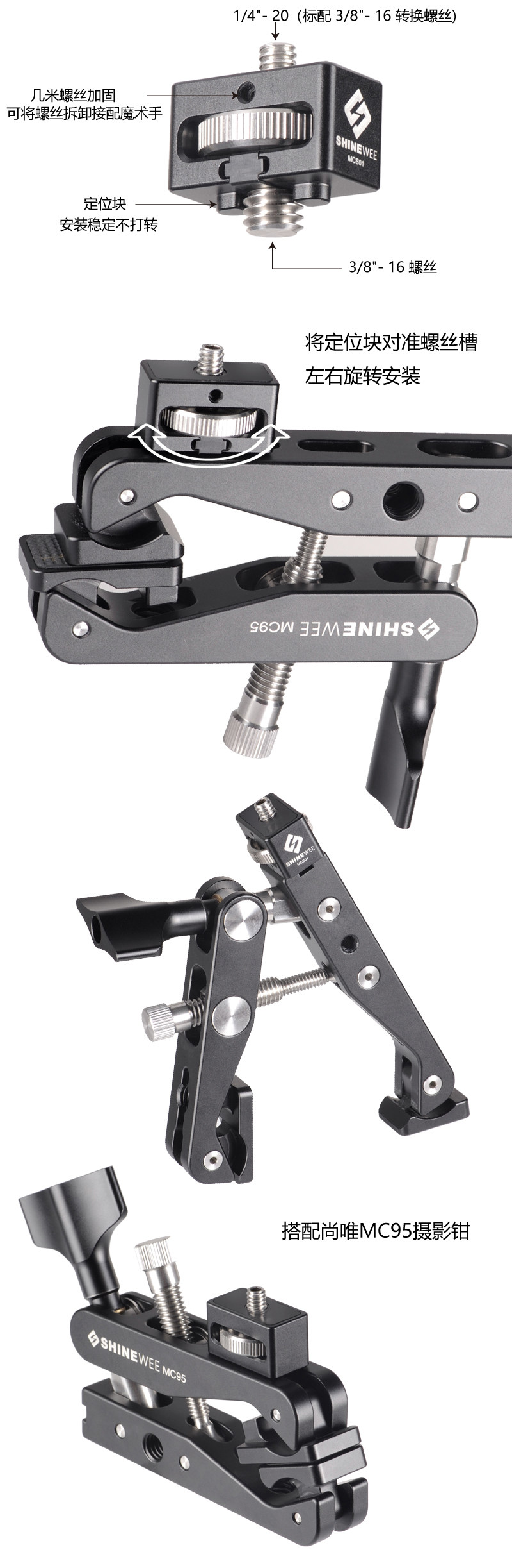 Shangwei Shinewee/MCS01 Преобразование, соединяющее мать -винт с мужским винтом к магической руке с фотографией