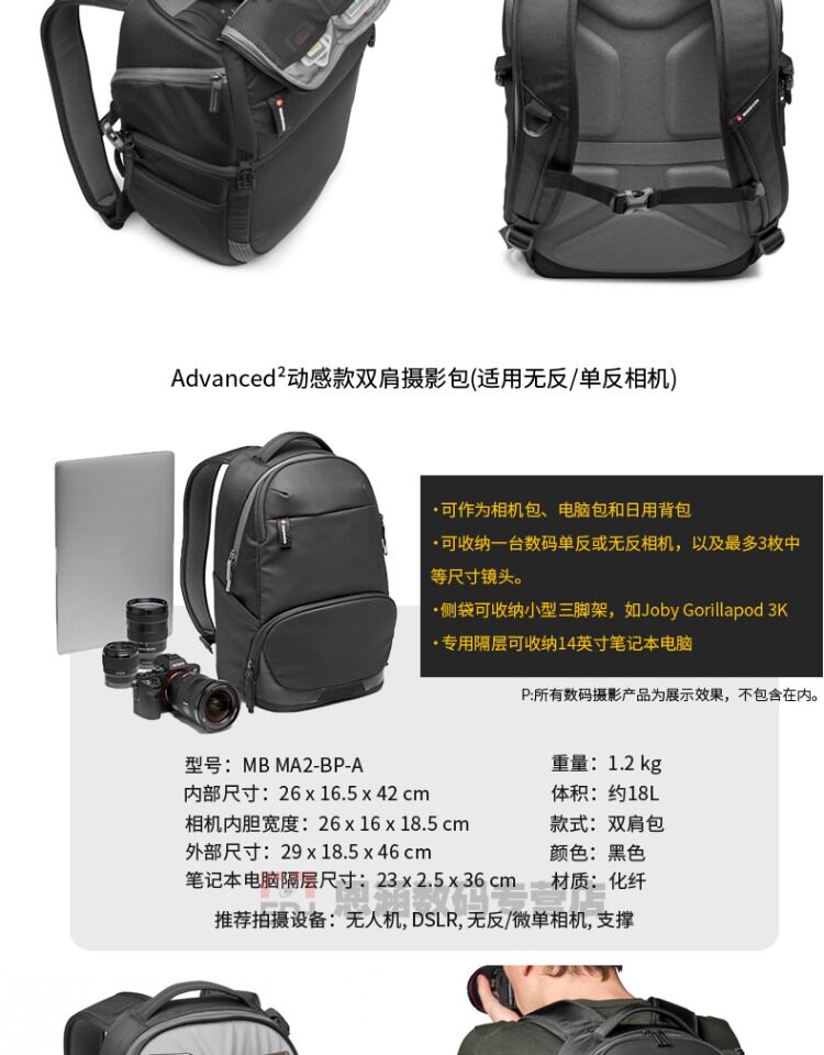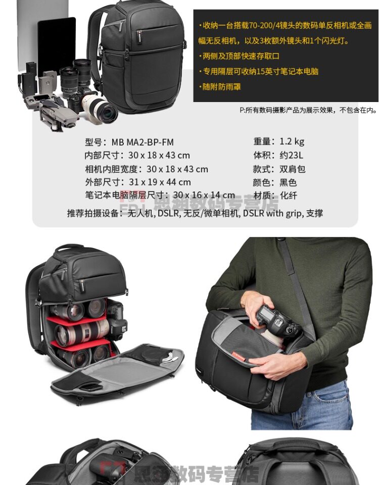 Manfrotto (Manfrotto) MB MA2-BP-BF-BF подходит для многофункциональных цифровых пищевых камеров.