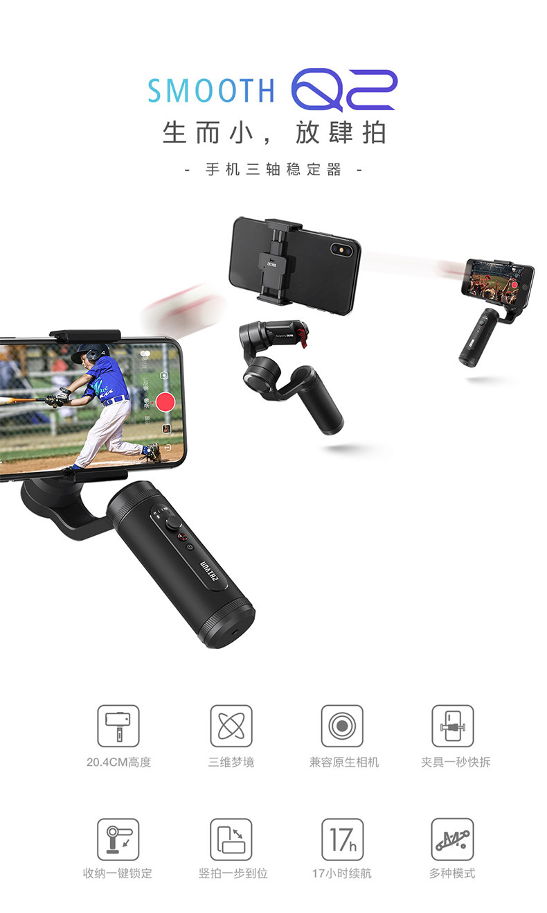 Zhiyun Zhiyun SmoothQ2 Мобильный телефон Руководитель для съемки стабилизатора стабилизатора Vlog Live Стабилизатор мобильного телефона