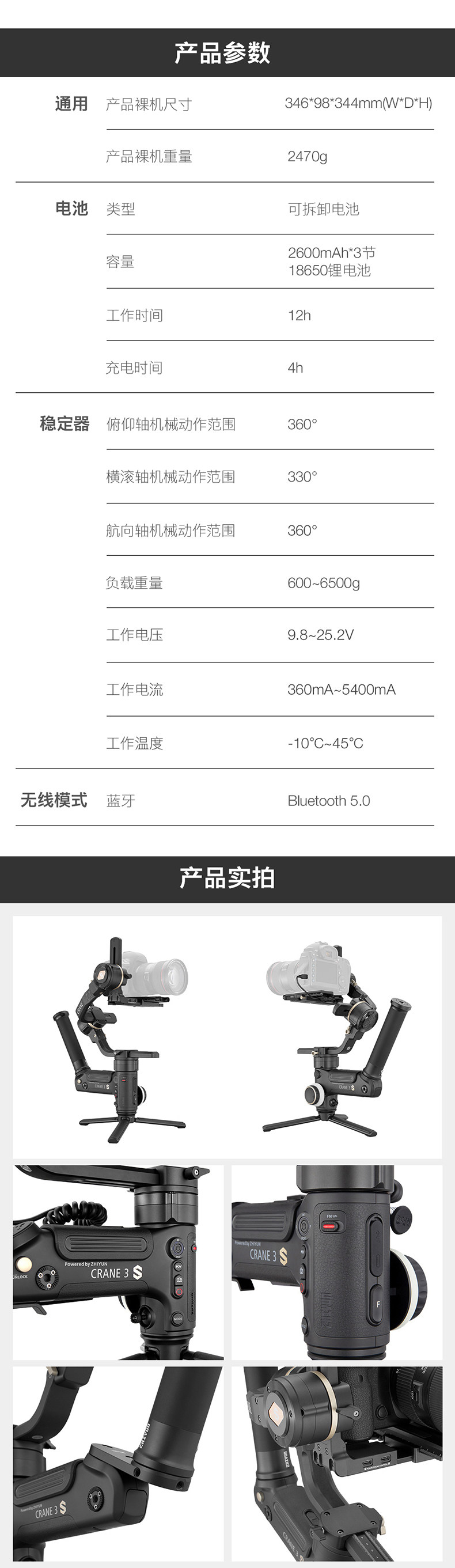 Zhiyun Zhiyunyun Crane 3S Стабилизатор камеры SLR Профессиональная камера