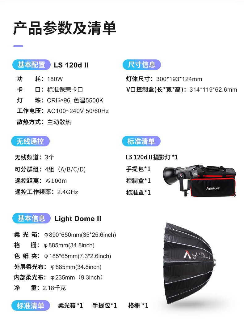 Aputure/爱图仕 LS C 120D II Фотография Просмотр светодиодного портретного видео