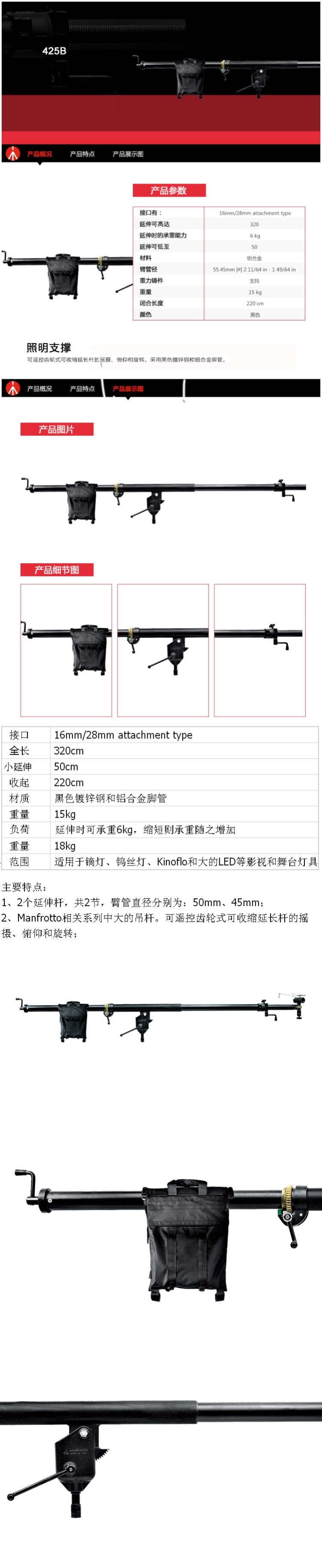 Манфротто Манфу Тяжелая стрела Фотография и телевидение диагональная рука рокер горизонтальный стержень 425b