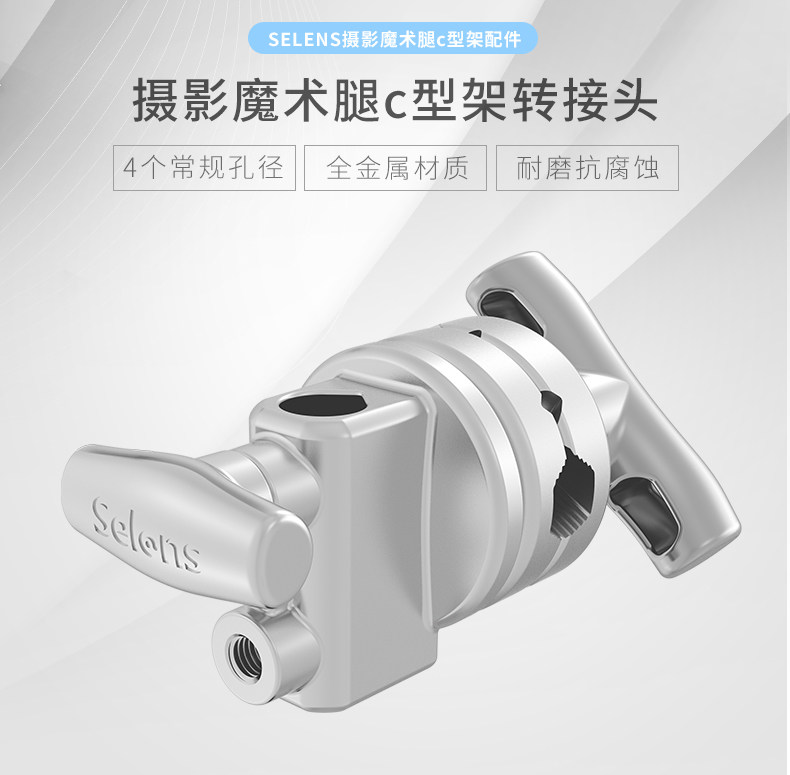 Адаптер для осветительной стойки Magic Leg из нержавеющей стали C-типа, разъем для осветительной стойки из серебристого металла, проигрыватель для фотостудии Magic Leg, универсальный зажим для осветительной стойки, зажим для флаговой доски, осветительная подставка с наклонным кронштейном, аксессуары для осветительной стойки с перекладиной