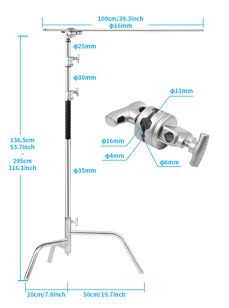 | Цвет: | C-образная подставка для освещения из нержавеющей стали (с перекладиной, адаптером) [бесплатный мешок с песком * 1, фоновый зажим * 4] |
