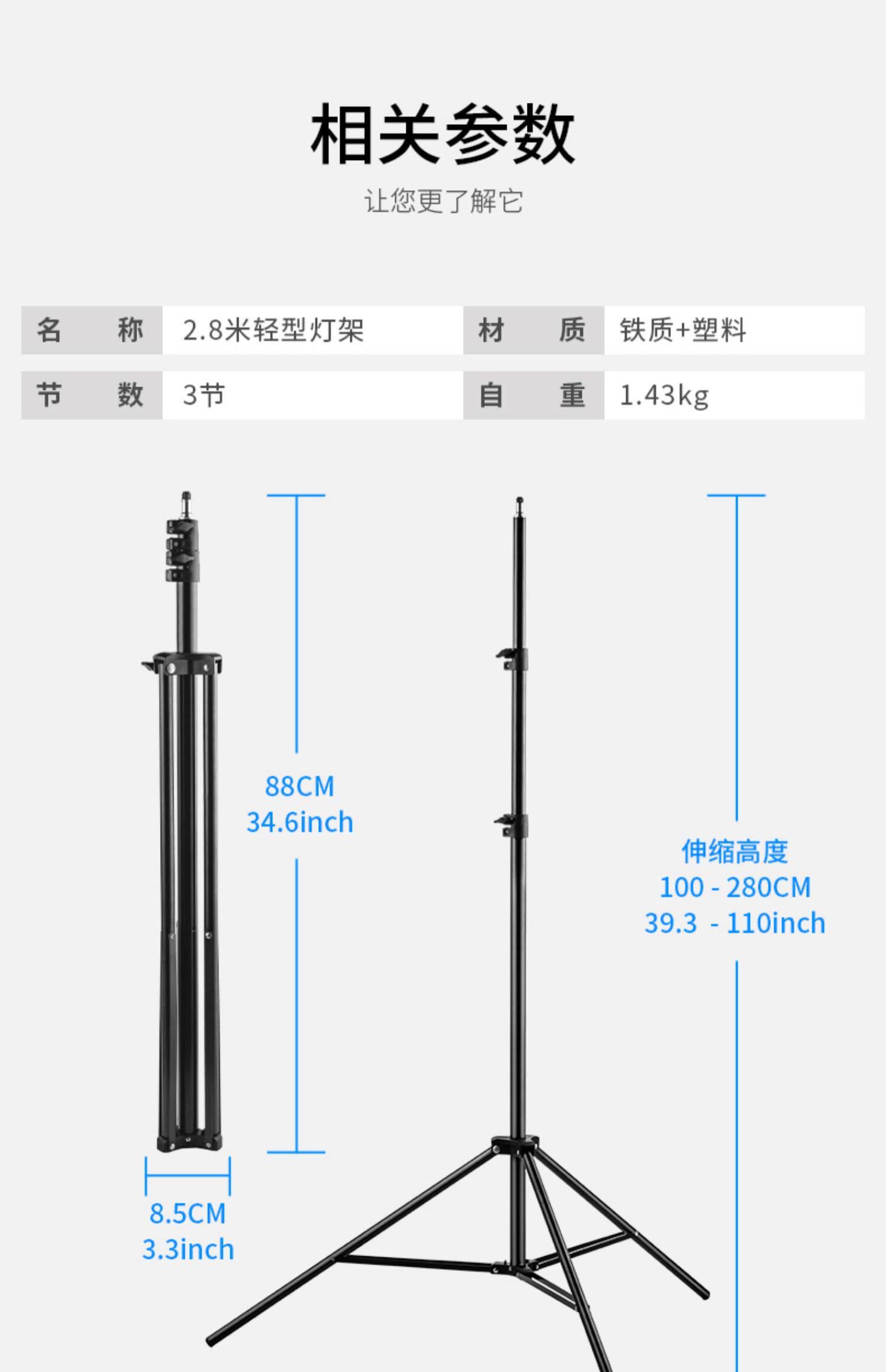Мигающая лампа, светодиодный штатив, заполняющий свет, портативная трубка, угловая рама, складное оборудование, 2.8м
