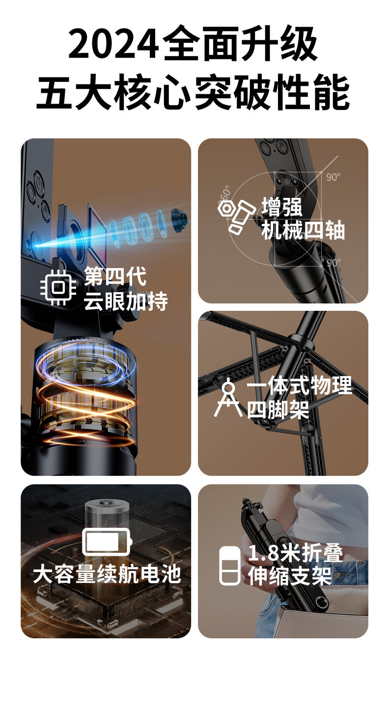 AR Smart Anti -Shake Mobile Phone Стабилизатор Стабилизатора Стабилизатора Стабилизатора селфи -стержня Трехнокожие кронштейны для путешествий с фотографией Влог Видефакт Live Video Universal последующее -360 -Degree Automatic Rotation 2024 Новая модель