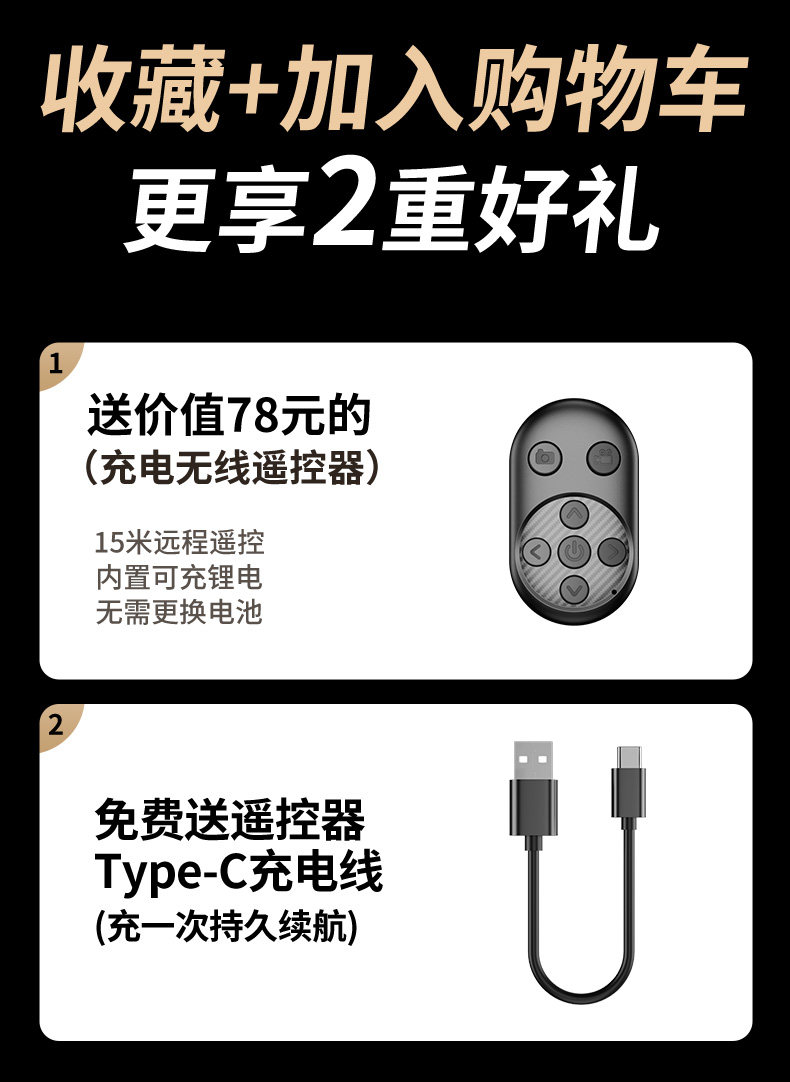 - [Следующие параметры] Все отправляют кабель зарядки Type-C+Photo/Douyin Remote Control
