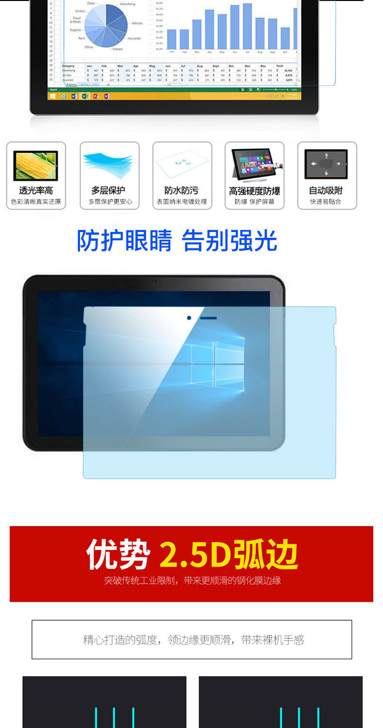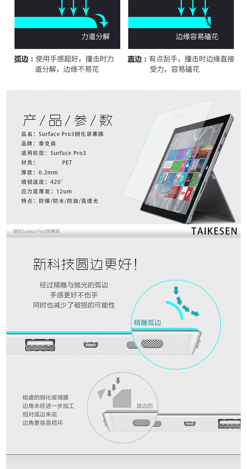 - [PRO4/5/6/7-12,3 дюйма] 0,2 мм ультра-тонкий (анти-синий свет) 9H-защищенной*2,5D ARC