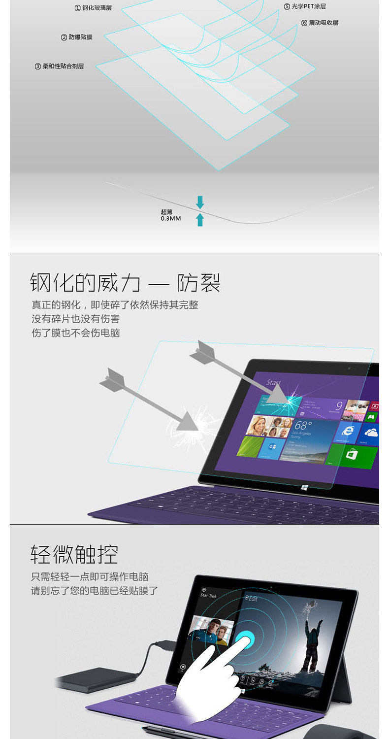 - [PRO4/5/6/7-12,3 дюйма] 0,2 мм ультра-тон-тон (голубая пленка с защитой глаз) 9H-защищенная*2,5D ARC
