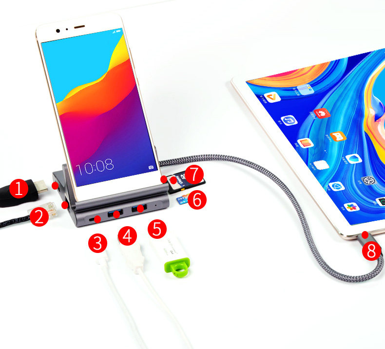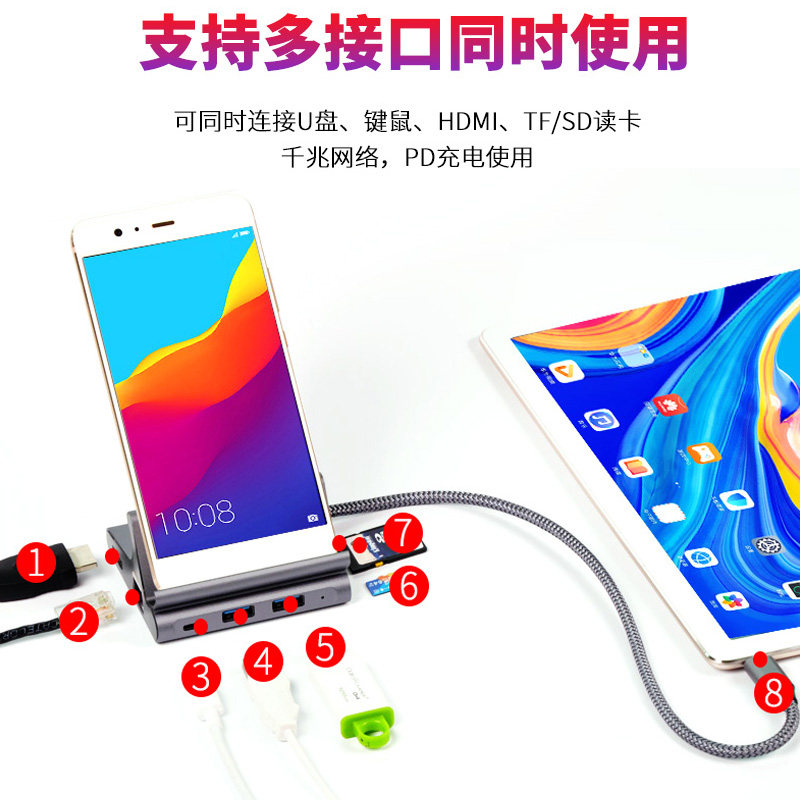 Mingfeng Huawei Notebook планшет MateBook /Matebook E /MatePad Pro Новая модельTБаза преобразования YPE-C, поддерживает карты TF, SD-карты, сетевые кабели, HDMI, двойной USB-выходной выход, с интерфейсом зарядки PD, что позволяет использовать устройство непрерывно!Подходит для редко -интерфейсного оборудования, с конструкцией кронштейнов, вы можете разместить мобильные телефоны, планшеты или другие электронные устройства.