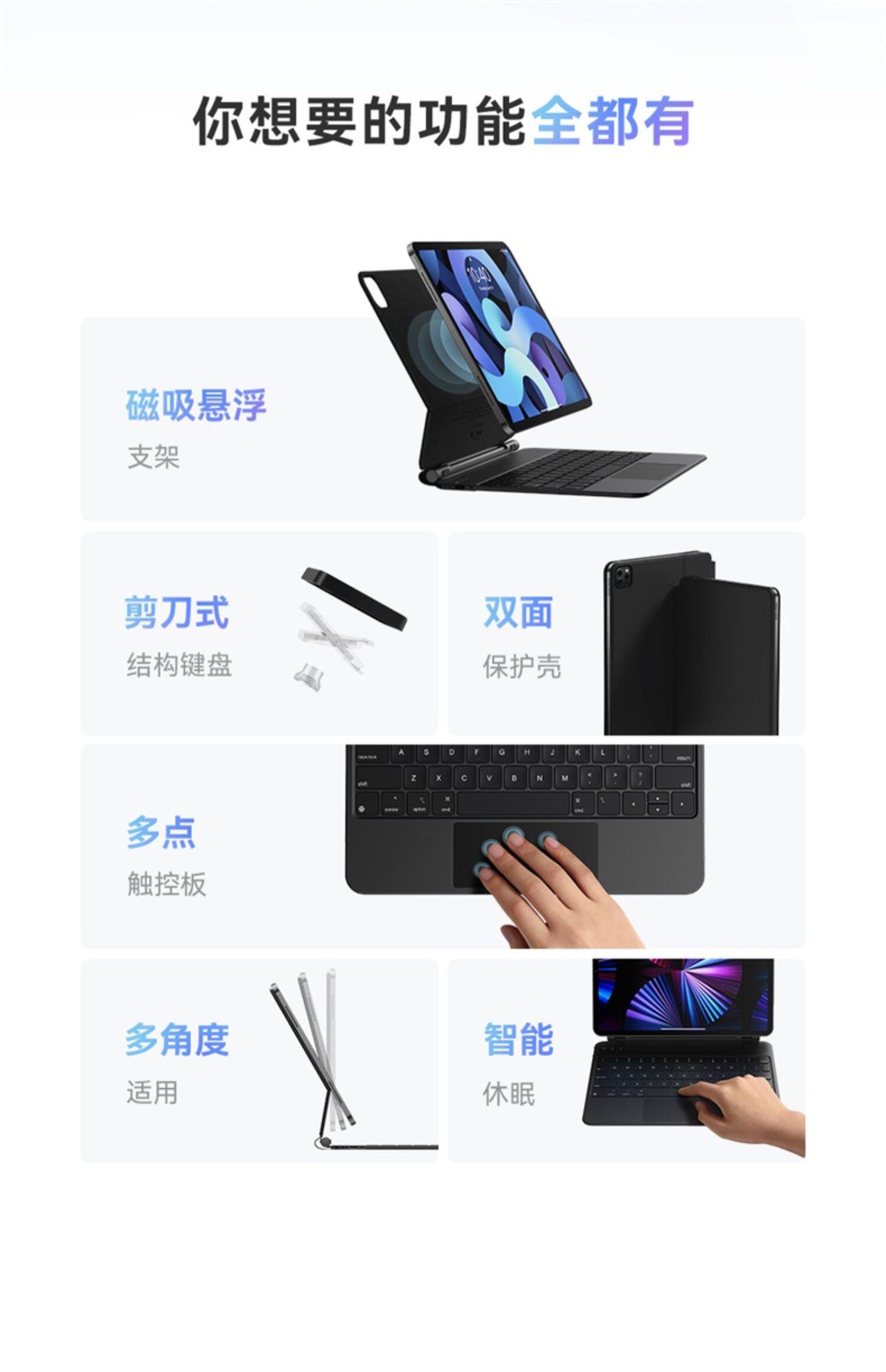 | Цвет: | [Официальный флагманский черный] Магнитная всасывающая подвеска? Контроль света?, [Официальный флагманский белый] магнитная всасывающая подвеска? Легкое контроль?, 【Официальный веб -сайт Black】 подвеска и волшебная клавиатура+флагманский карандаш для iPad, [Официальный веб -сайт White] Подвеска и волшебная клавиатура+флагманский карандаш для iPad |