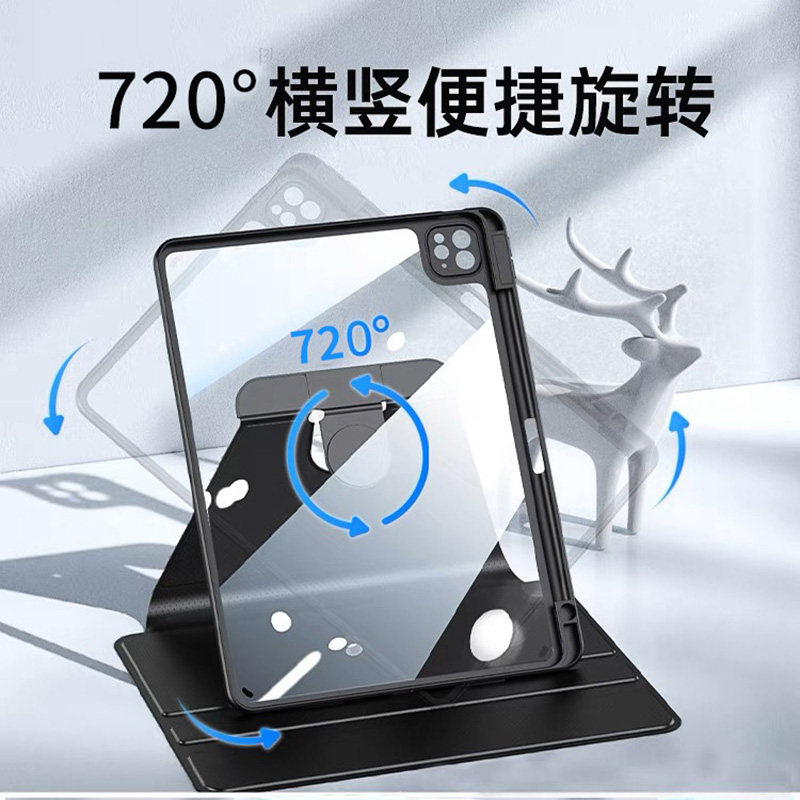 Применимо к 720 вращающейся защитной крышке 20233PAD AIR5 AIR5 Защитная оболочка 10 -го поколения AIR -FALL AIR4 APPLE DABLET DREED 10,2 с PEN SLOT PRO 11 -дюймовый MINI6 Прозрачный магнитный магнитный всасывающий обучение