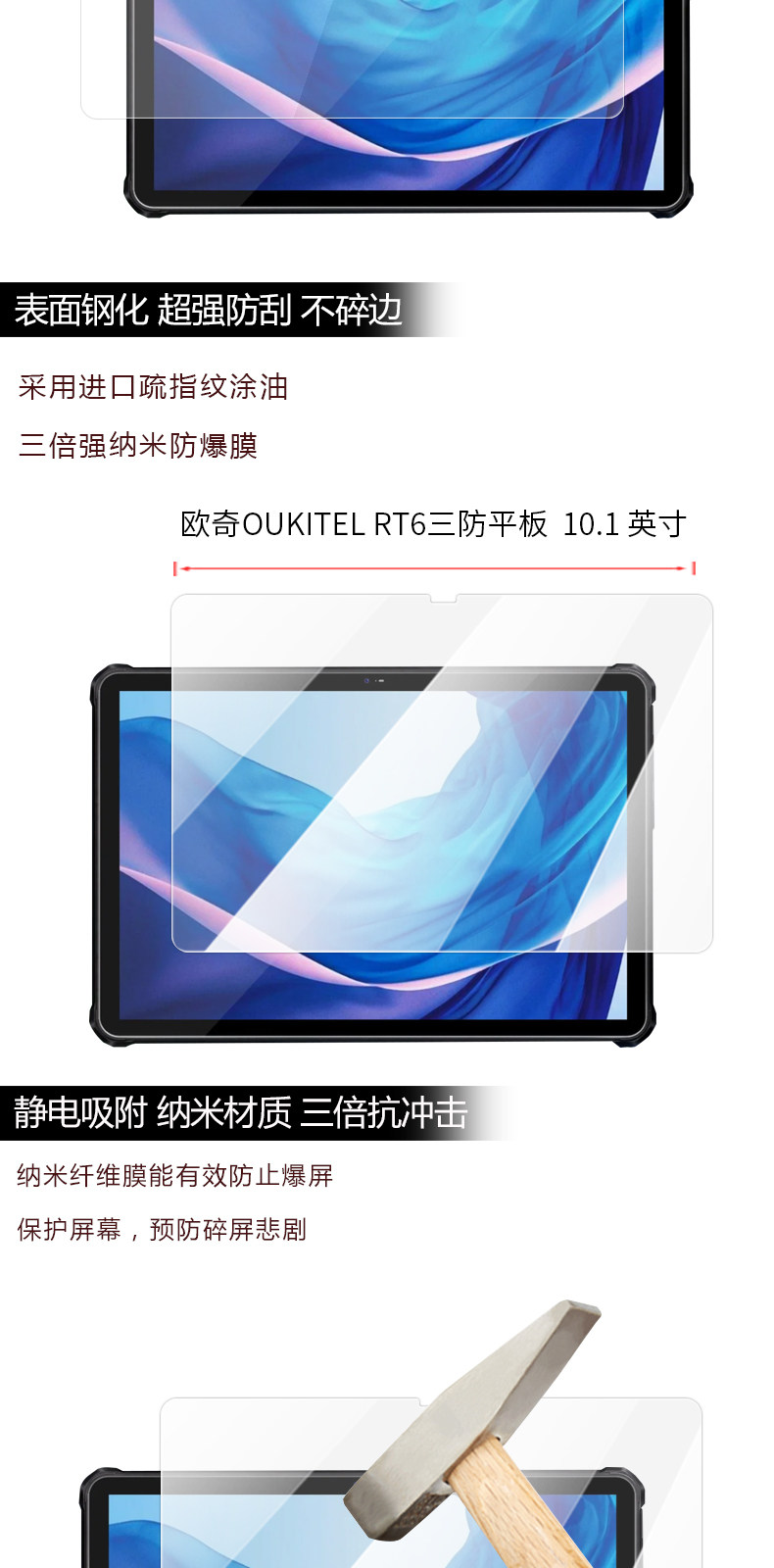 Подходит для Oukitel Rt6 Three -Anti -Plalte Nano Explosion Film 10.1 -Царапина экрана, царапина, отпечаток пальца, отпечаток пальца, голубая светлая защитная пленка.