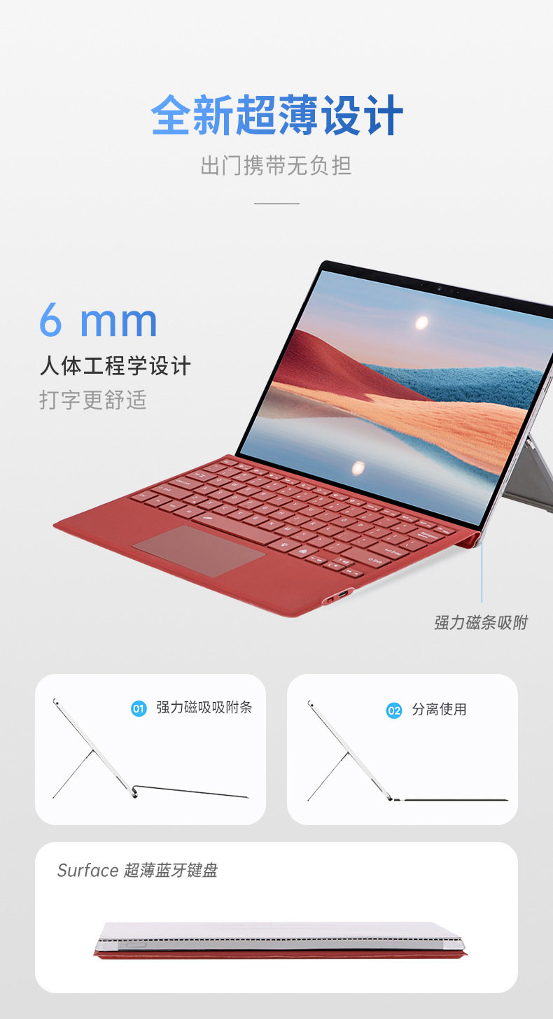Применимо к Microsoft Surface Pro3/4/5/6/7+Беспроводная клавиатура Bluetooth Bluetooth