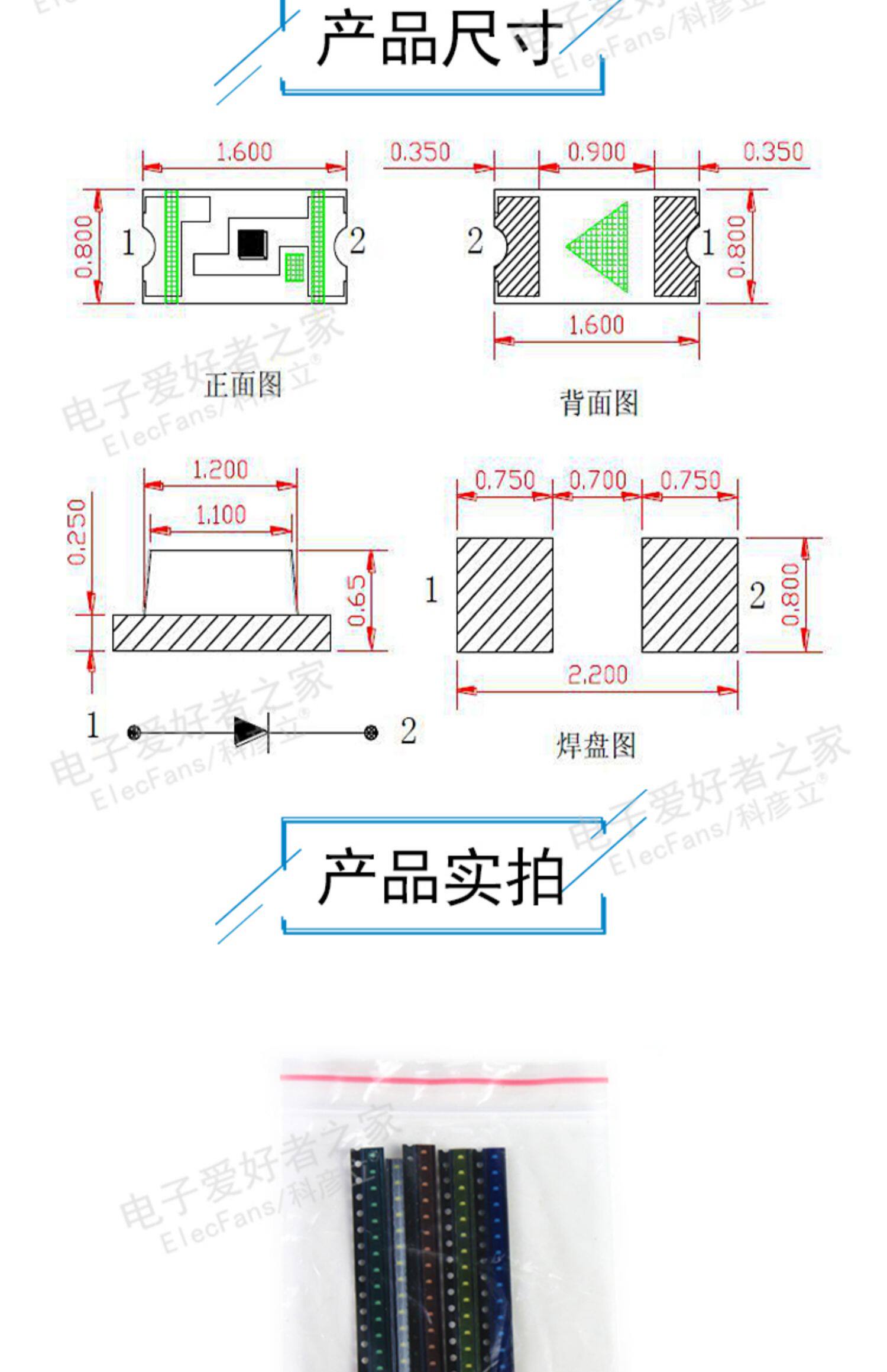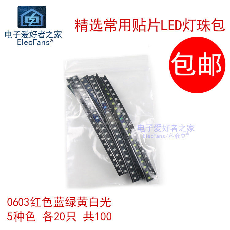 5 цветов каждые 20 0603 Пластырь светящиеся диоды, светодиодные лампы, красный, желтый, синий зеленый и белый свет