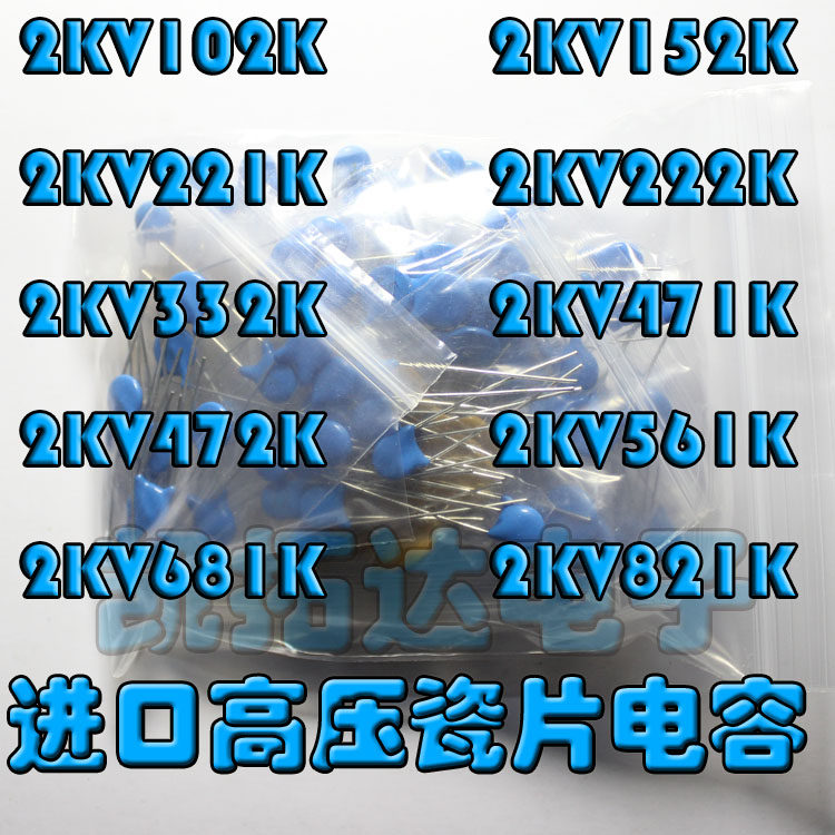 Импортированная вертикальная емкость фарфоровой сумки 2KV102K 152 221 222 471 821K 10 видов = 100