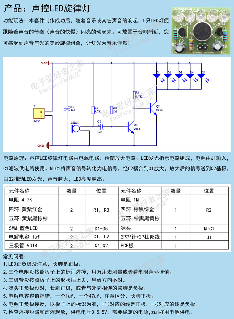 [宝贝名称:声控LED旋律灯套件]