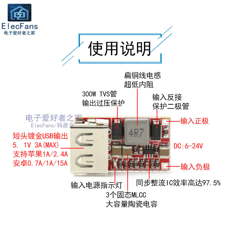 6: Получение выходных функций защиты от давления, введите предохранитель 1.5A, выход 5 В с телевизионной трубкой 300 Вт для нажатия защиты зажима для защиты USB -устройства.
