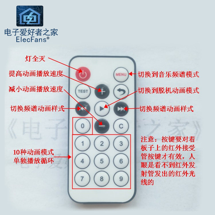 [遥控器说明:对着红外接收头按键]