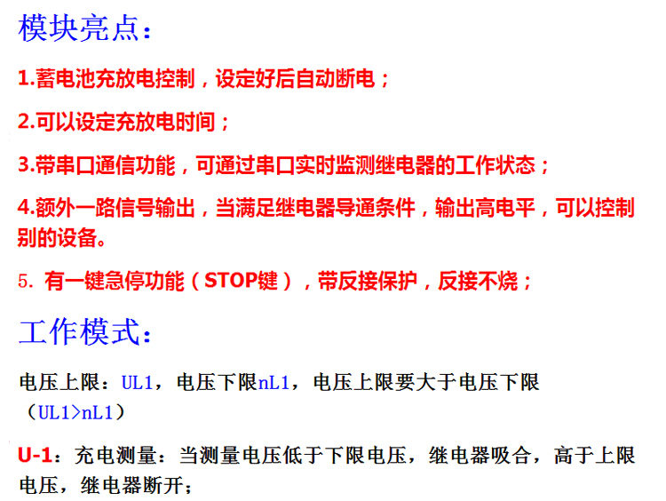 Модуль заполнения аккумулятора и модуль разгрузки. Интегрированный счетчик напряжения под напряжением Время защиты от перевоза.