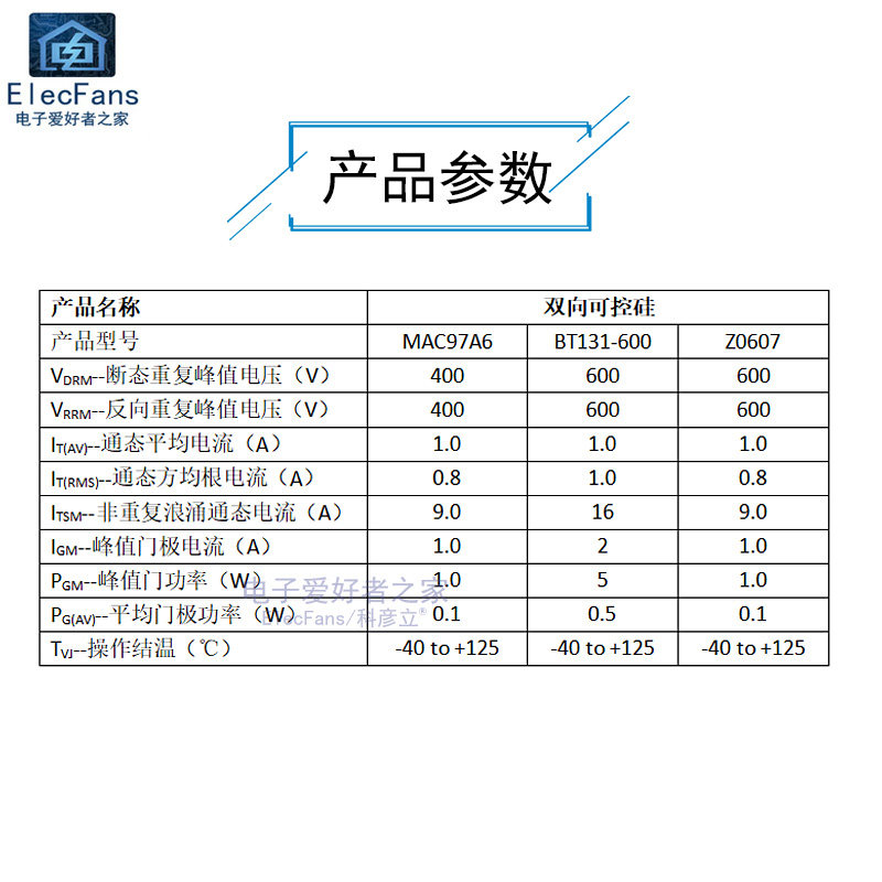 Двухнативный тиристор MAC97A6/MAC97A8/BT131-600/Z0607 Кристаллическая трубка TO-92