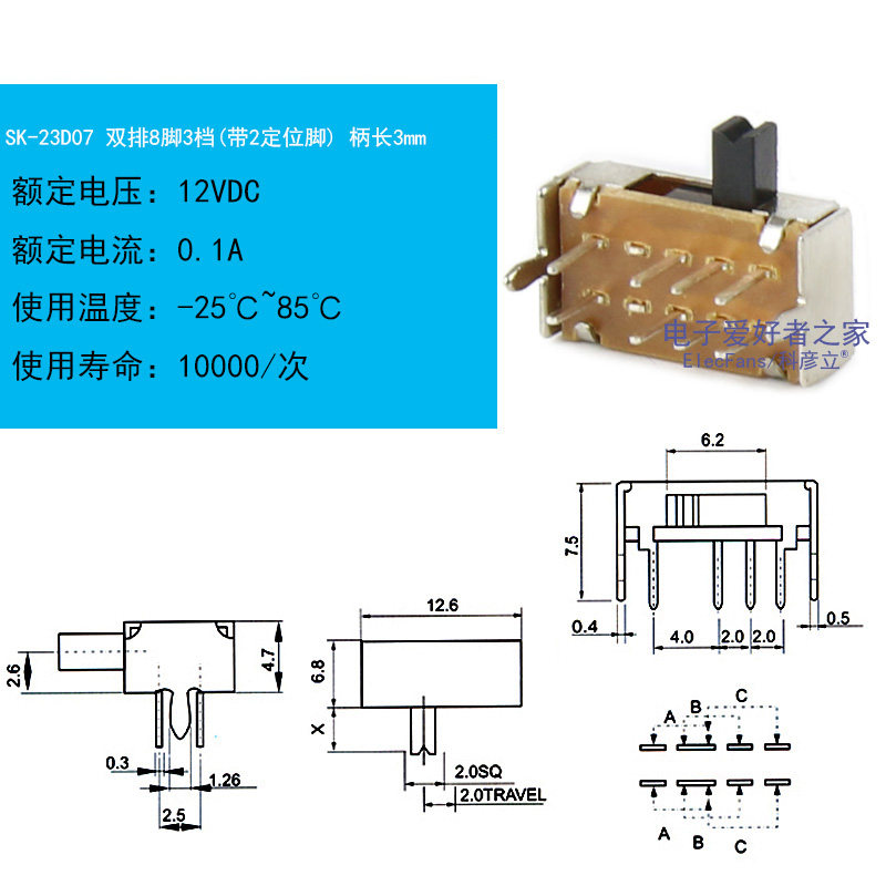SK23D07G3 Double -Row 8 -pin 3 -Gear Height 3 -мм циферблатный переключатель Микро -заполненный