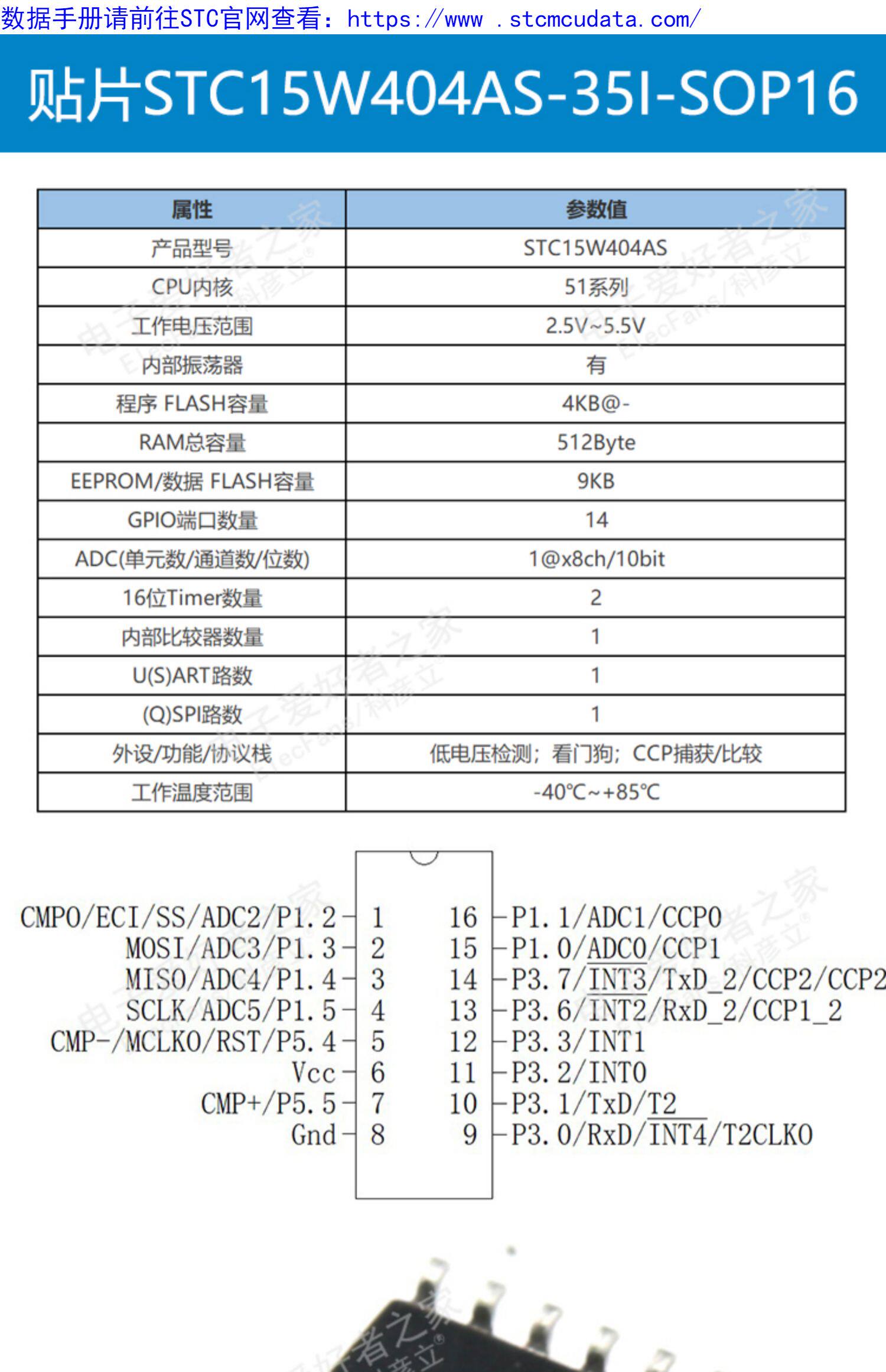 Новый оригинальный патч STC15W404AS-SOP16 C8051 Одно-чип-компьютерный фип