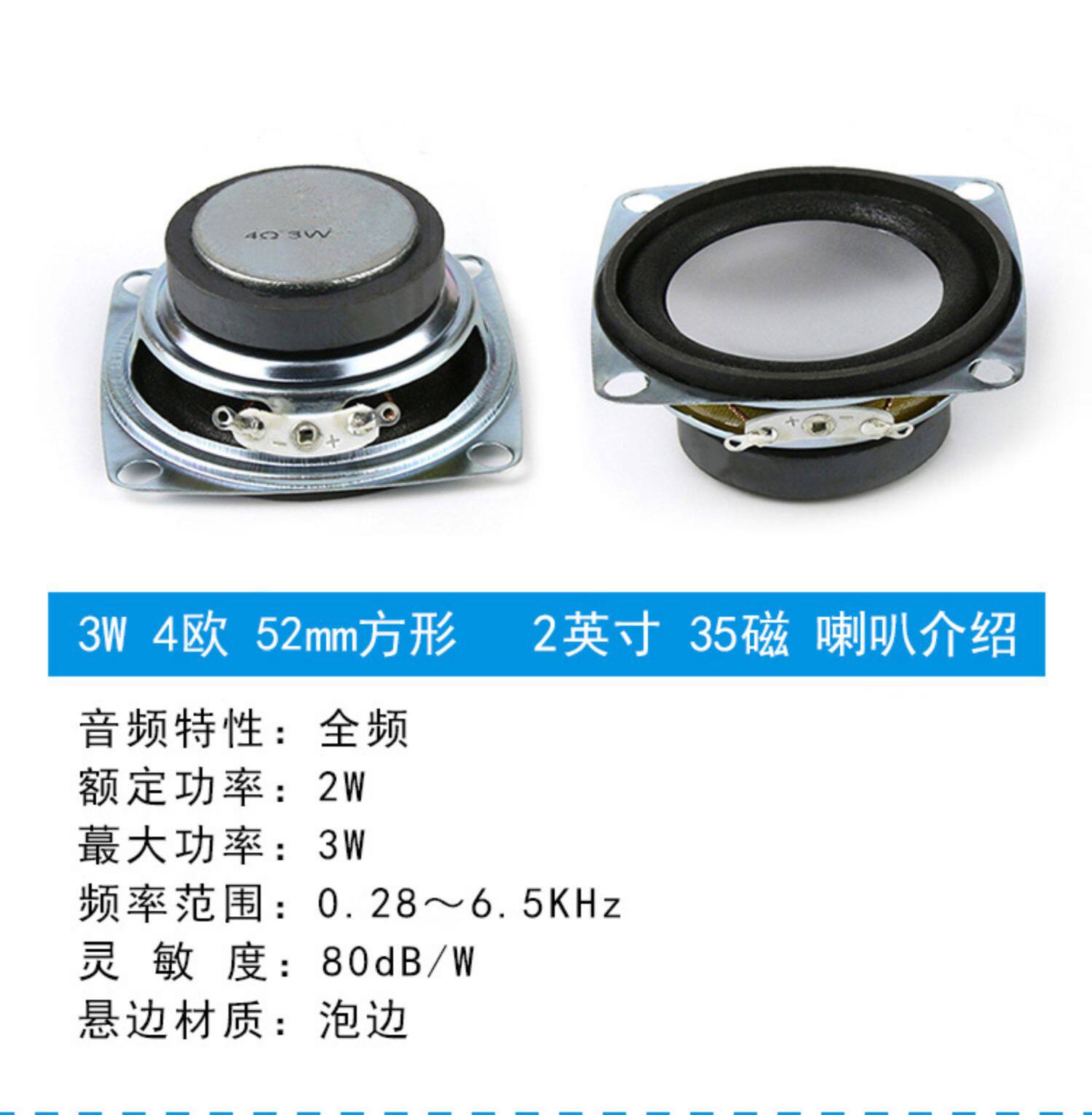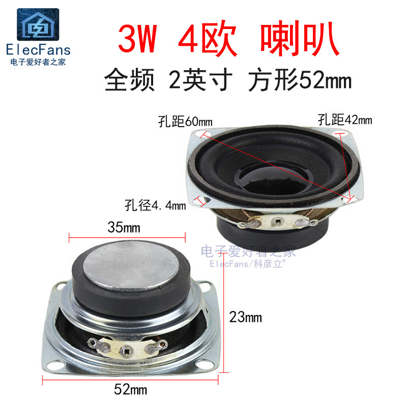 Квадратный мегафон, колонки, 2 дюймов, 3W, 52мм