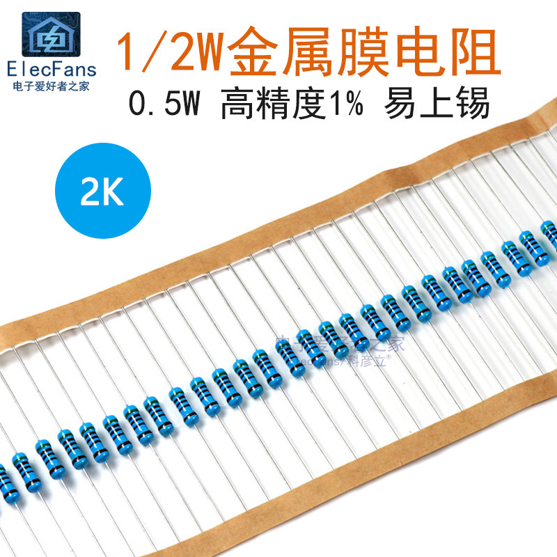 (50) 2K металлические мембранные резисторы Пятиколорное кольцо 1/2 Вт (0,5 Вт) 1%Точность 2000 евро
