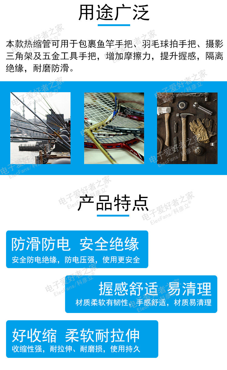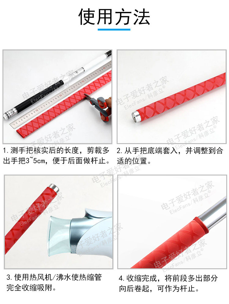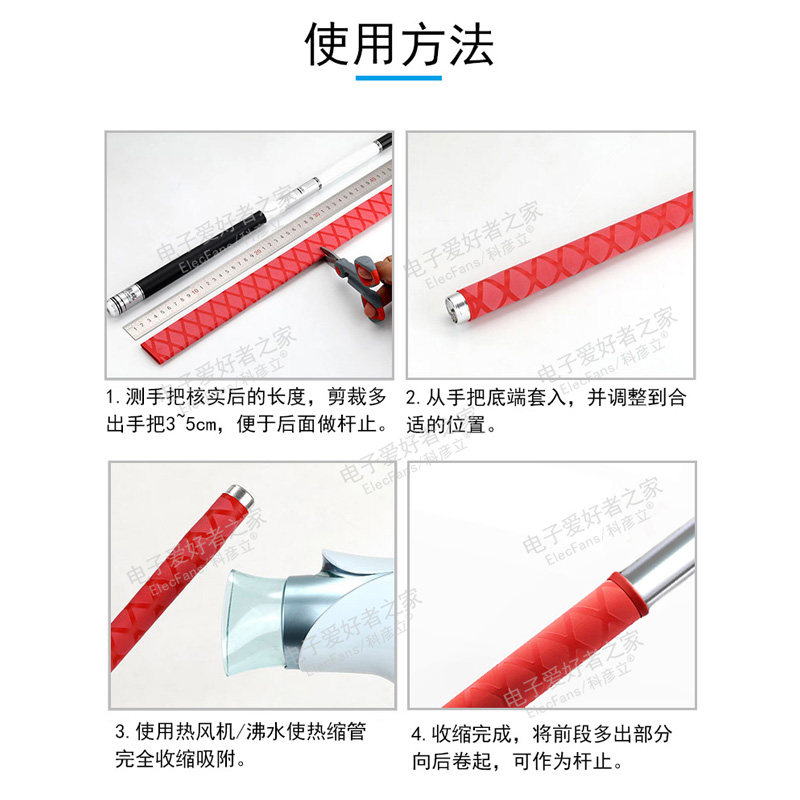 Антистатическая электрическая термоусадочная трубка для рыбалки, нескользящий пластиковый руль, защитный чехол, трубчатый манжет, 45mm, впитывает пот и запах