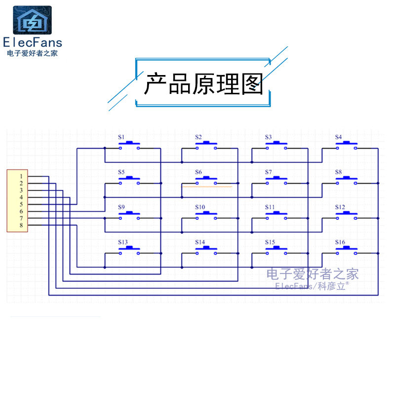 Клавиатура, цельный переключатель, кнопка, модуль, 4x, x4, 16 клавиш