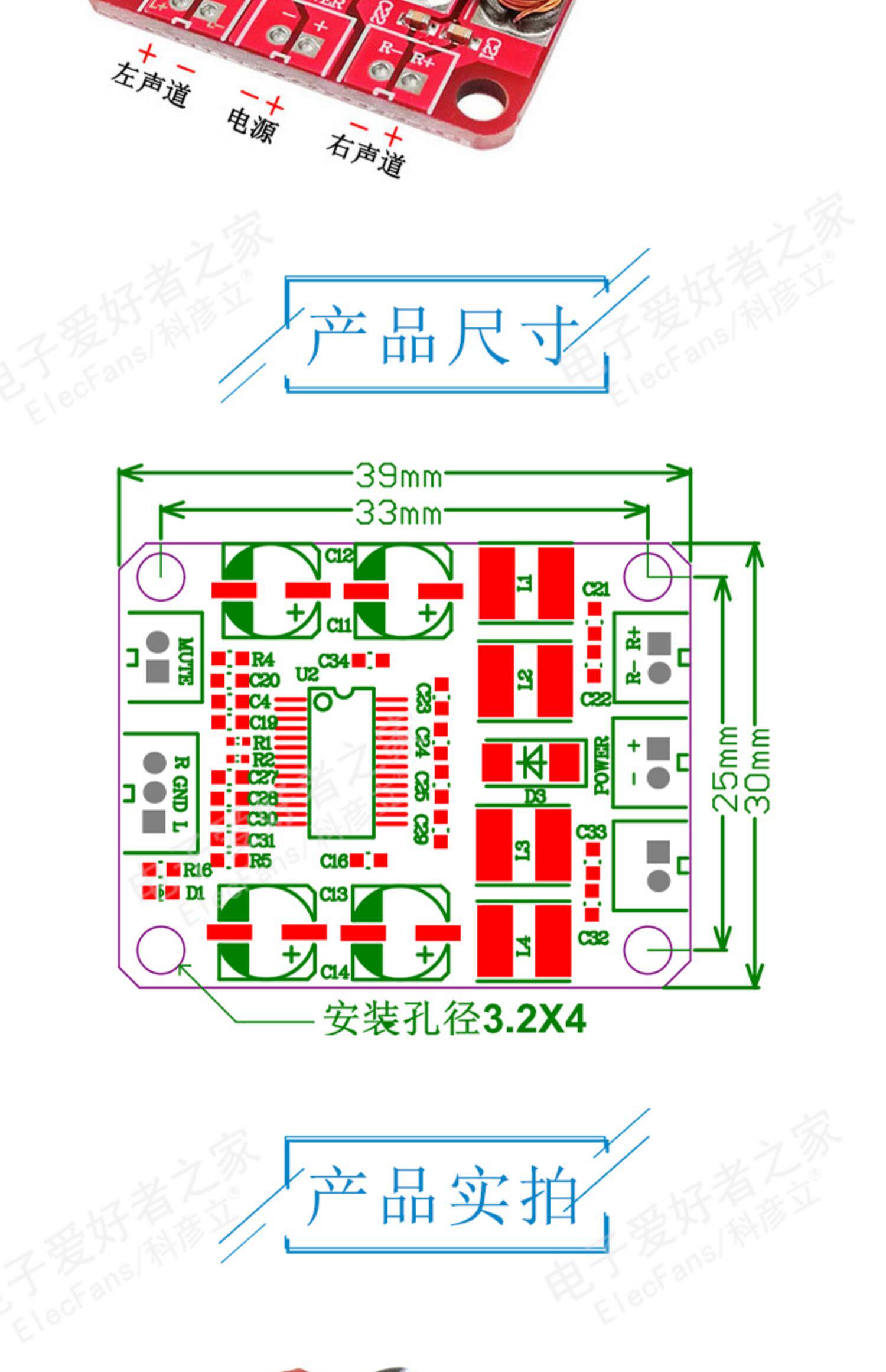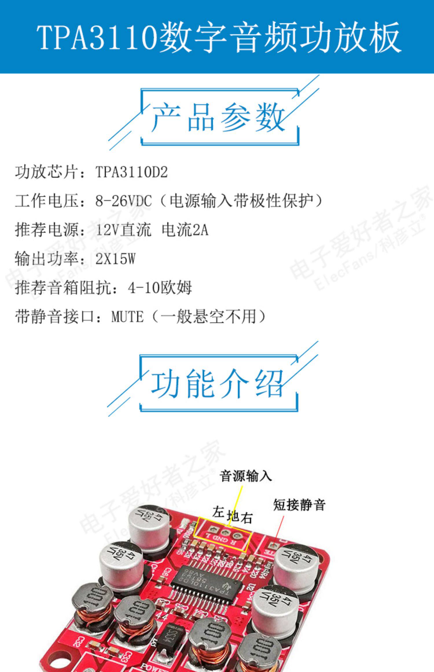 TPA3110 Цифровой аудио модуль питания модуля 15W Двухканальный звуковой звук Audiolex Sound