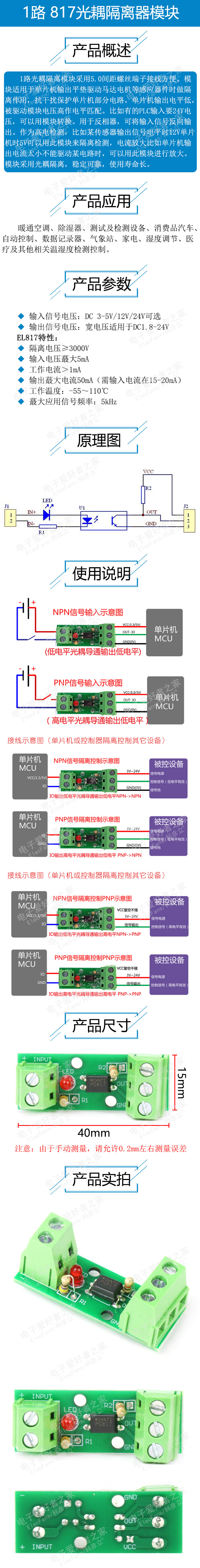 1-канальный модуль изолятора OptoCoupler EL817/PC817 Оптоэлектронная связь PC817 защищает плату микроконтроллера