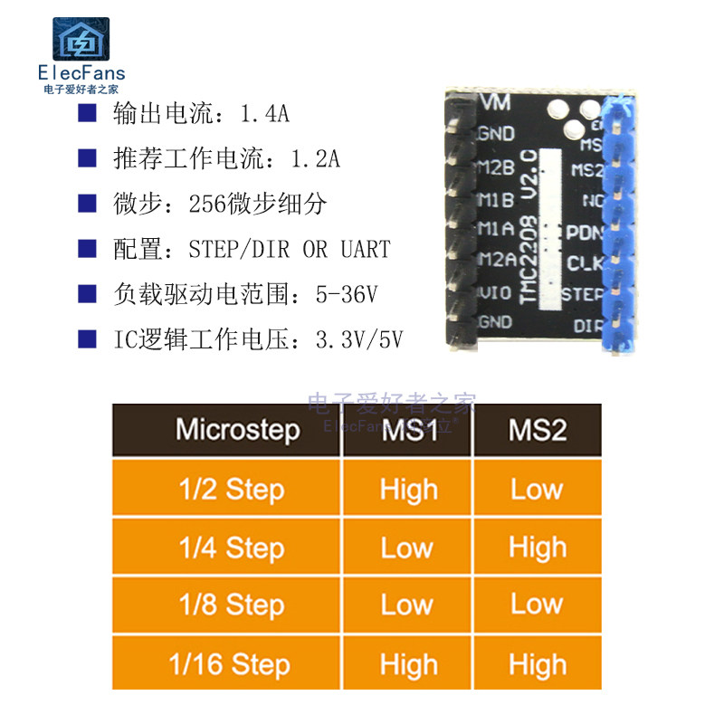 TMC2208 v2.0 модуль привода двигателя с осом двигателя 256 сегмент 3D -аксессуары