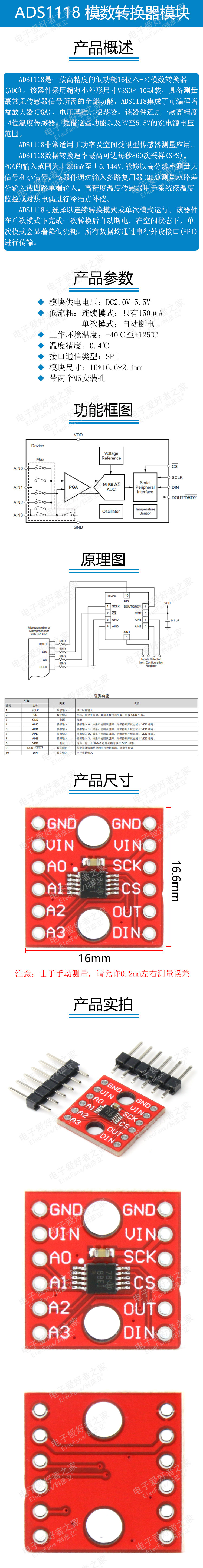 ADS1118 16-битный аналого-цифровой модуль конвертер модуль AD Development Poard Ток