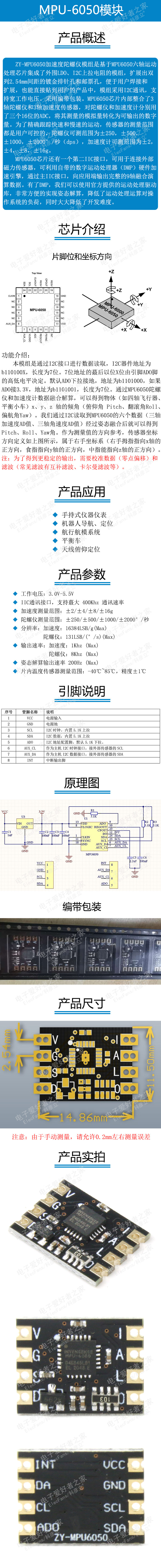 MPU-6050 Модуль 6DOF Трех осевой электронный гироскоп Трехо осевой гравитационный датчик ускорения.
