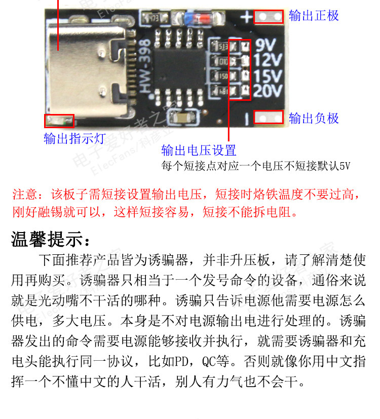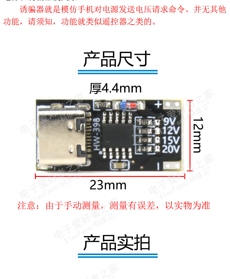 Протокол напряжения быстрого заряда USB PD/QC -модуль модуля пустого -спустера 9 В 12 В 15 В 20 В