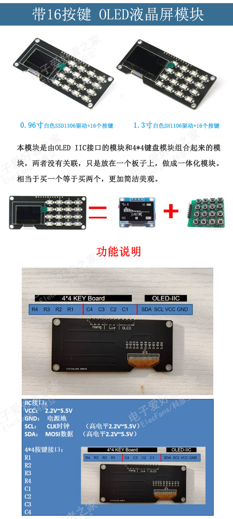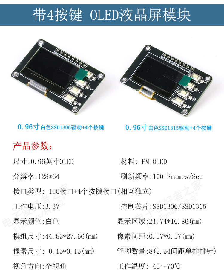 Принесите кнопку Meter Meter 0,96/1,3 дюйма OLED -модуль дисплея 12864