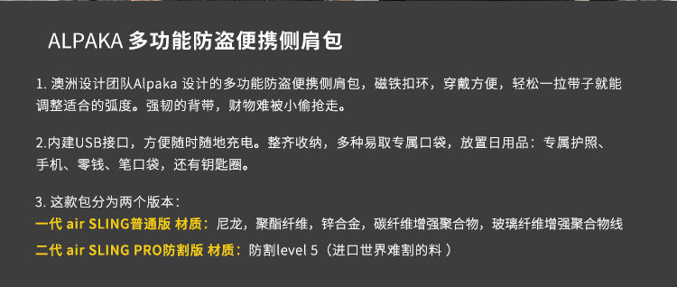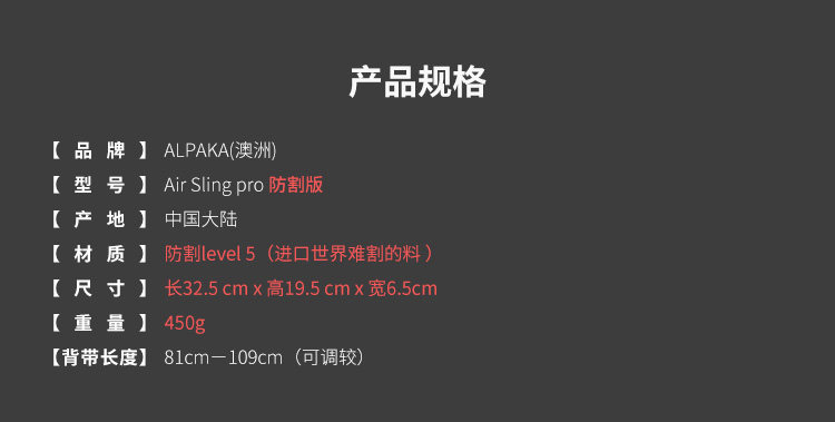 Австралия Alpaka Air-Sling Pro Многофункциональная антикота, водонепроницаемая водонепроницаем