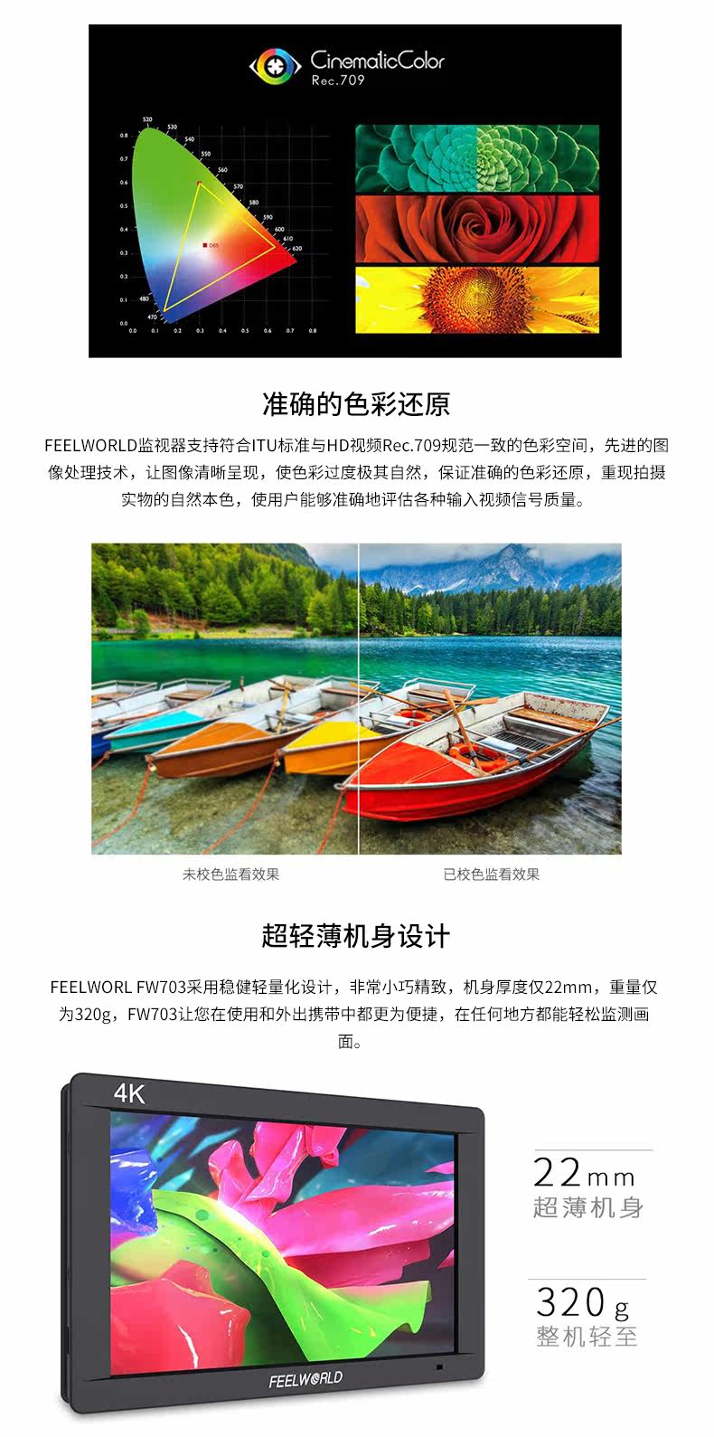 FEELWORLD FW703 камера-монитор для режиссера 7-дюймовый HDMI-монитор Микро-зеркальная камера 4K монитор