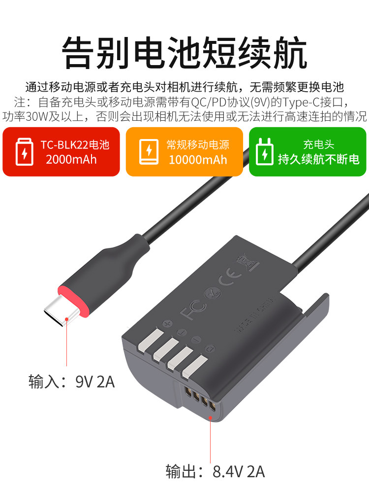 BLK22 Поддельный порт аккумулятора Type-C подходит для Panasonic Lumix DC-S5K S5K S5K S5GK GH5M2 GH6L Полноканальная камера на открытом воздухе
