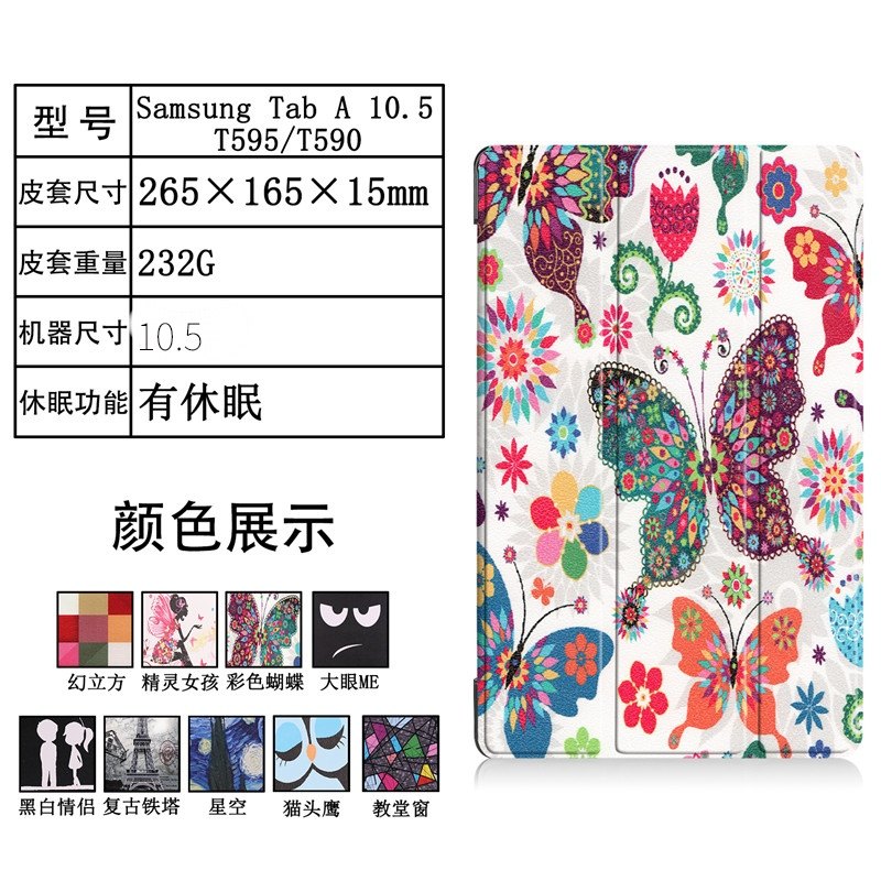 Применимо к Samsung Tab 10,5-дюймовый SM-T590/595 Shell T597 Окрашенная кожаная рукава плоская защитная крышка